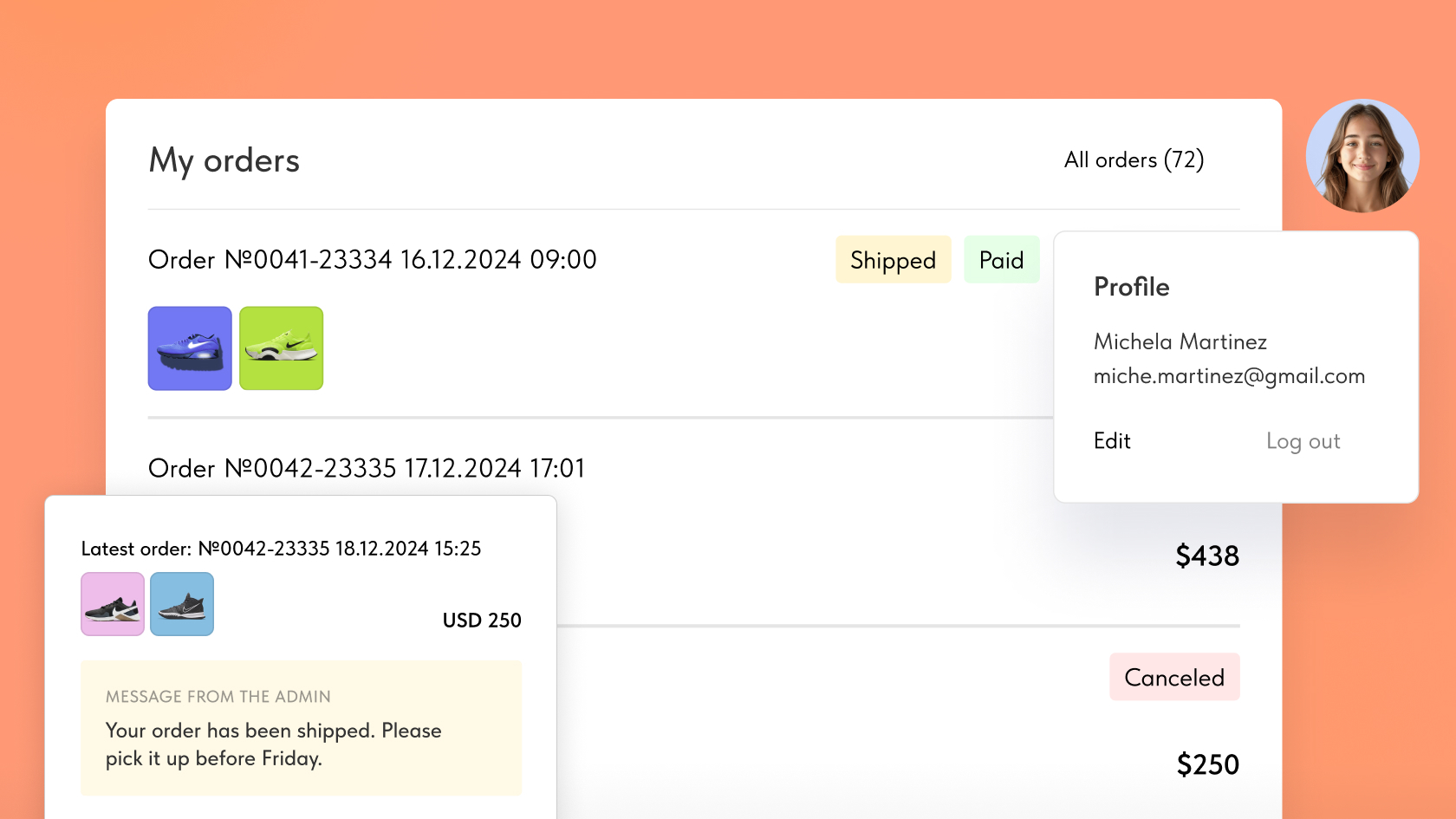 If you need to update the design, simply modify the Style settings—the changes will be applied to the website automatically. | | | | eCommerce owners can now manage orders more easily with the Online Store Customer Account. Buyers can view their order history and status and repeat purchases with a single click.