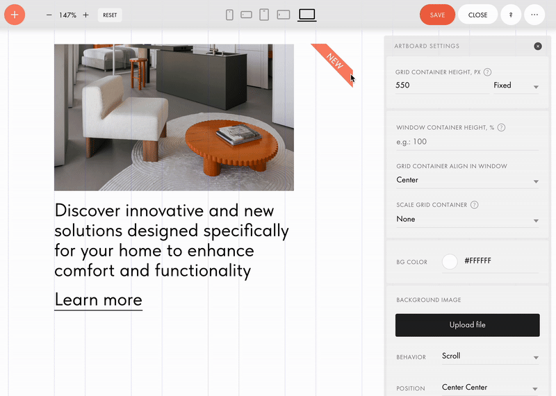 | | | | Absolute Positioning In Auto Layout | You can now set an element within Auto Layout to Absolute Position, allowing it to ignore Flex settings. This is useful when you want to freely position an element that is a part of the Auto Layout, for instance, to place a "New" label in the corner of a product card.